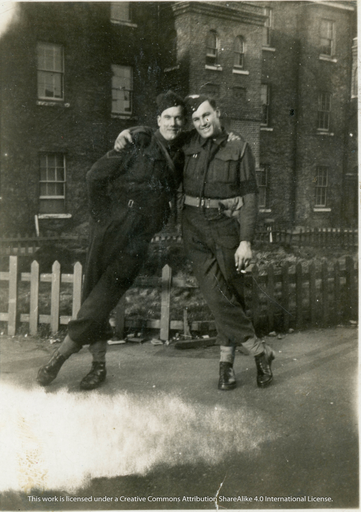 The photograph above is of L/Cpl (Lance Corporal) Harry William Manchester of the Number 2 Company, Canadian Provo Corp, Second Canadian Infantry Division, goofing with L/Cpl Russ Tobin in southern England circa 1941.