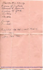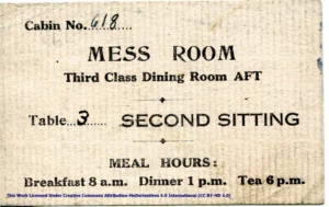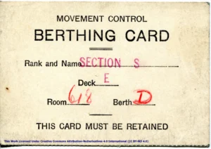 Historical Note – H.M.T. Empress of Australia Message, Berthing, and Mess Cards – July 23, 1940