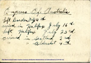 H.M.T. Empress of Australia Information Card, July 23, 1940 during the Atlantic crossing from Halifax, Nova Scotia to Scotland.