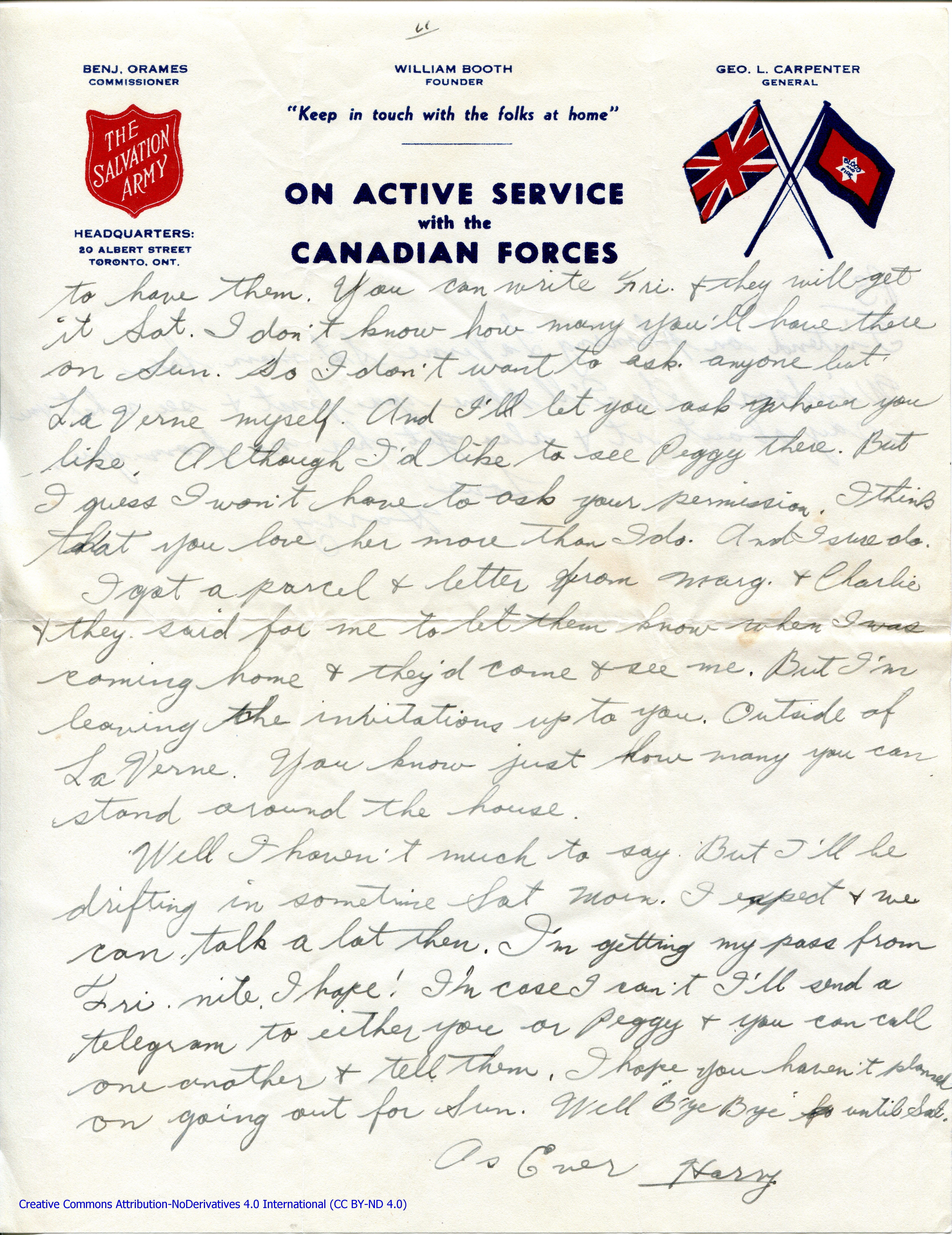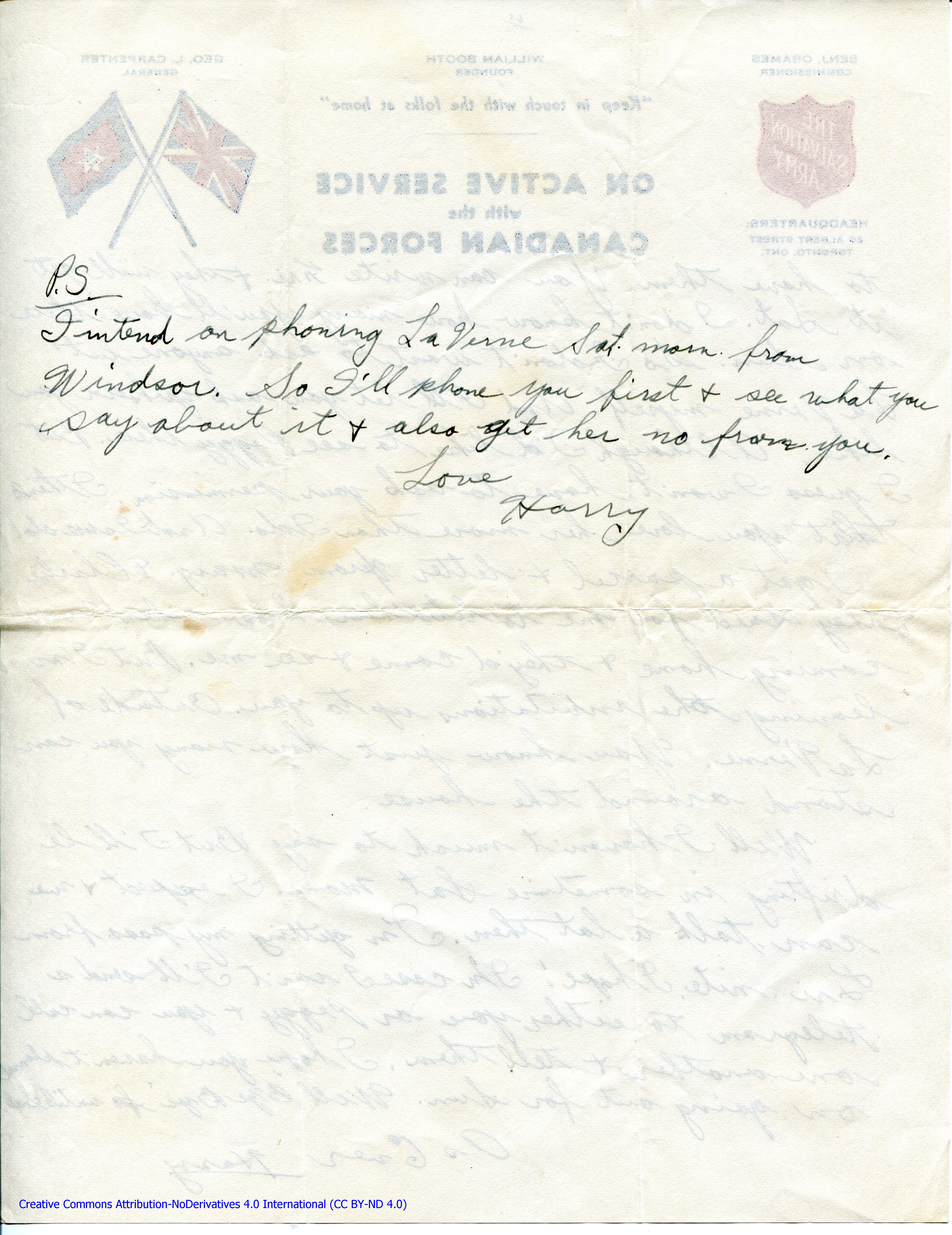 Personal Letter to La Verne Woods – June 4, 1940, sent from Camp Borden, Ontario, Canada, Page 2.