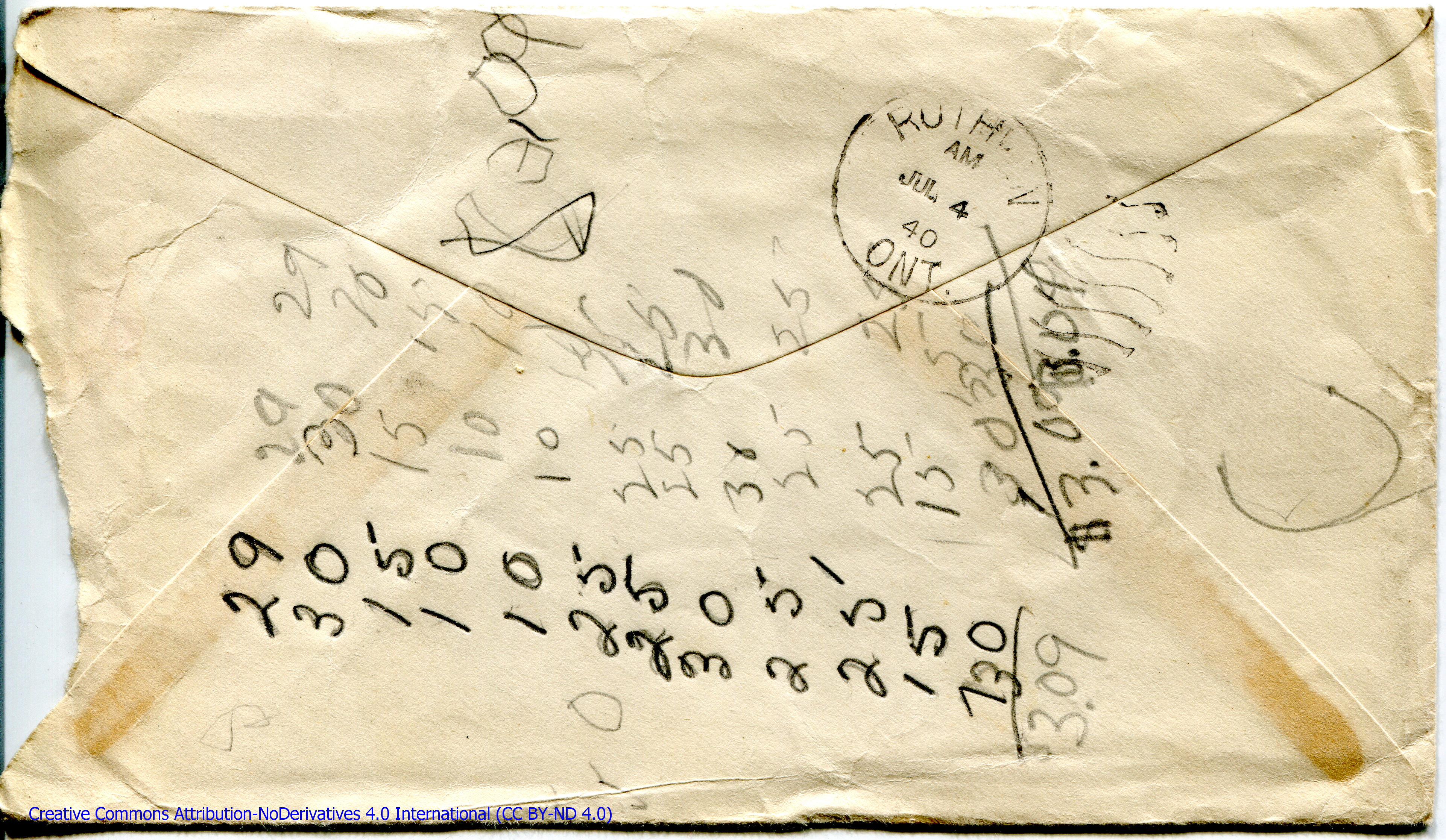 Personal Letter to Mrs. Elton Newman – July 10, 1940, sent from Camp Borden, Ontario, Canada, Envelope, Reverse.