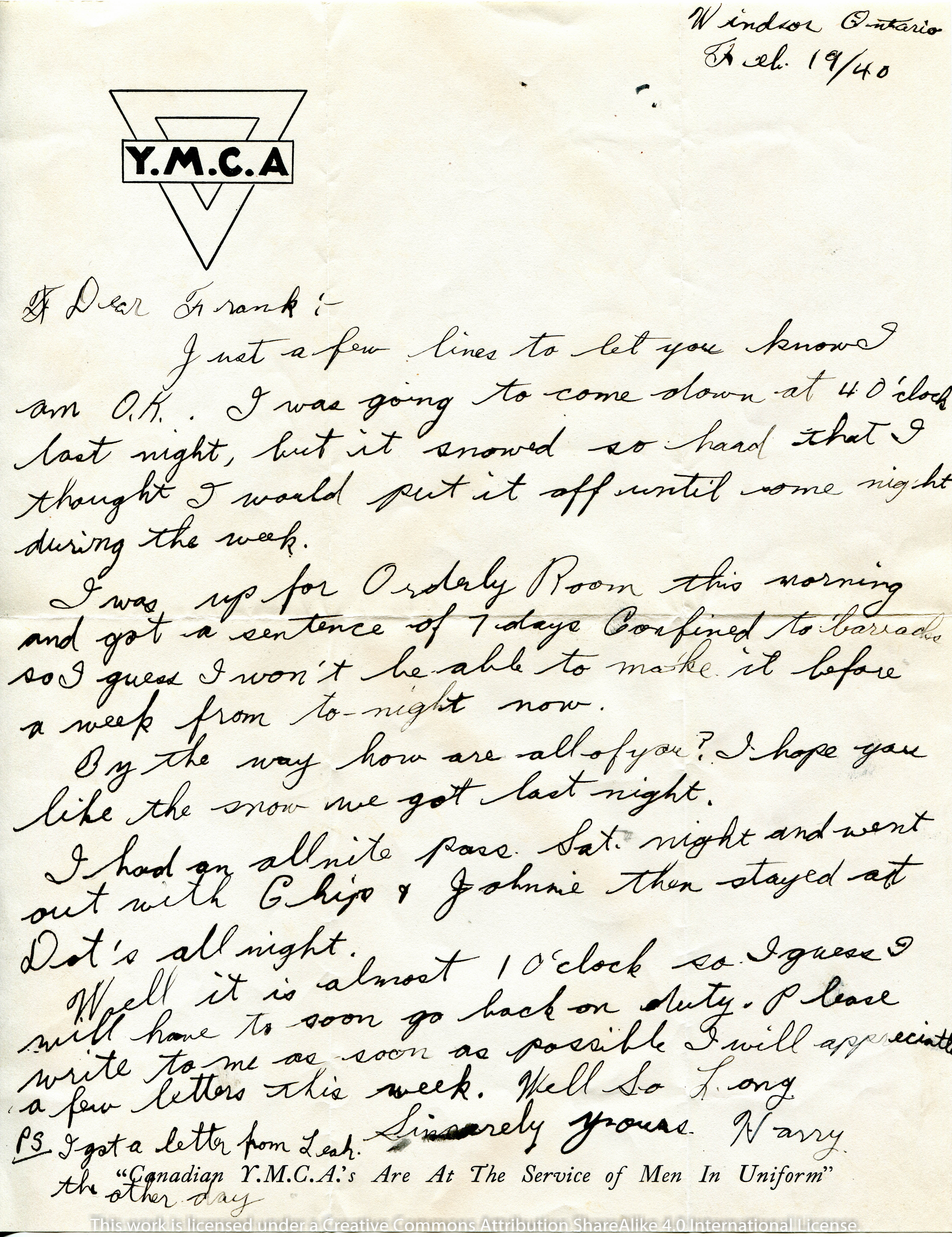 The actual date of this artifact is unknown because there is no envelope with postmarks, but believed to have been written during the first or second week of June, 1940.