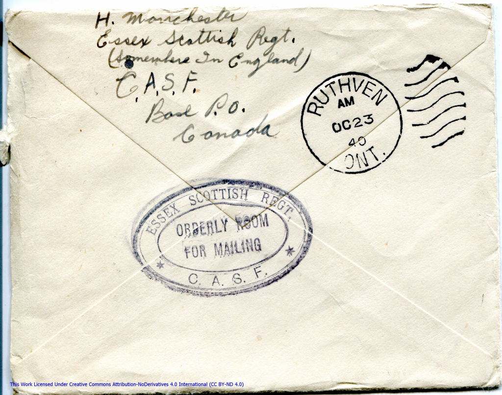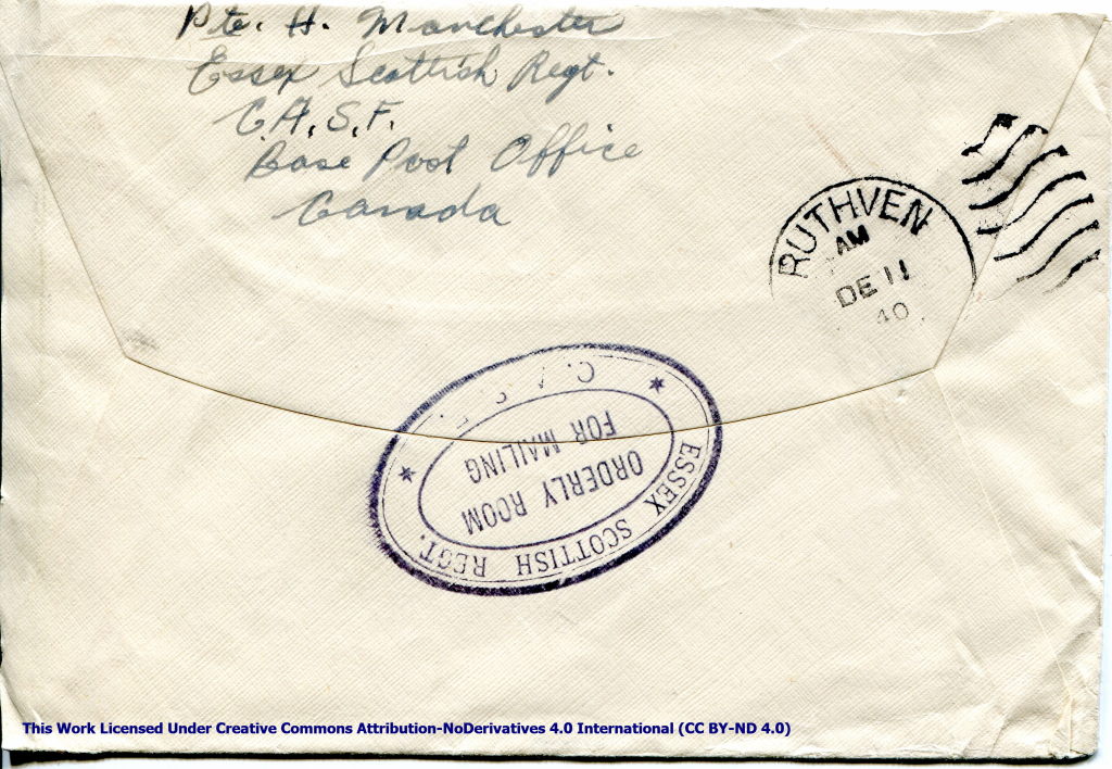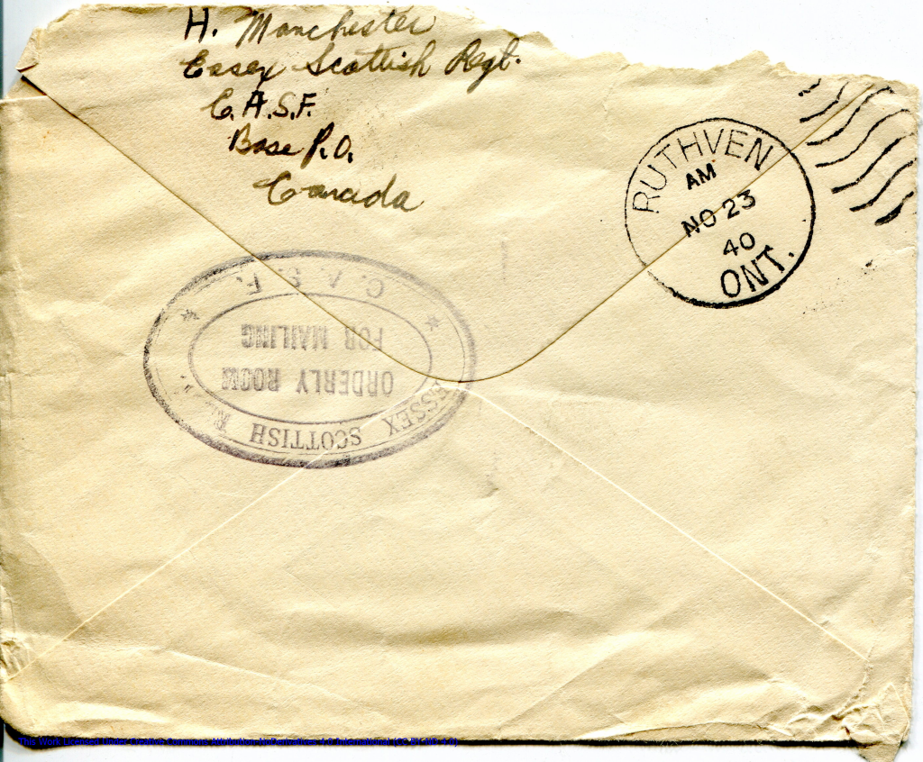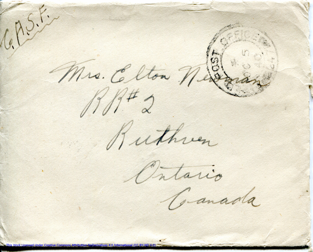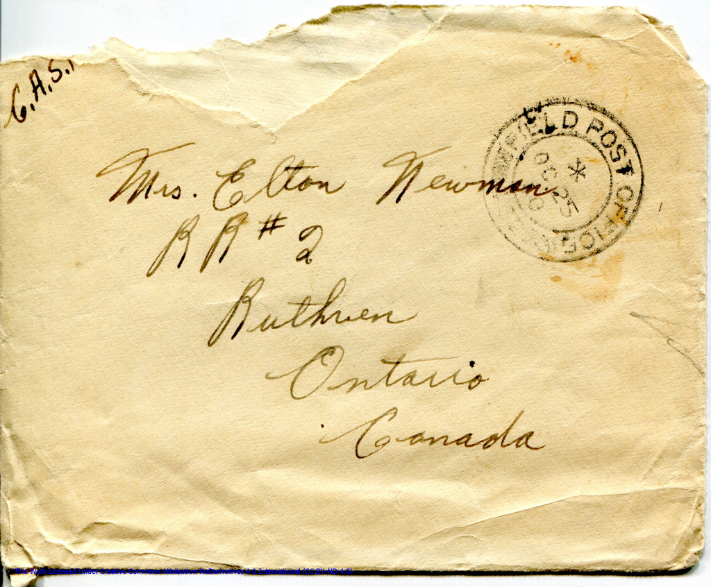 We have had a grand day to-day. The sun shone all day long. I washed my pants to my oldest Battle dress uniform, yesterday & so I hung it out in the sun to-day & it dried real good. I’ll have to find time to press them to-morrow. It will likely rain to heat the old devil to-morrow cuz’ this is the first day we’ve had without rain for I don’t know how long