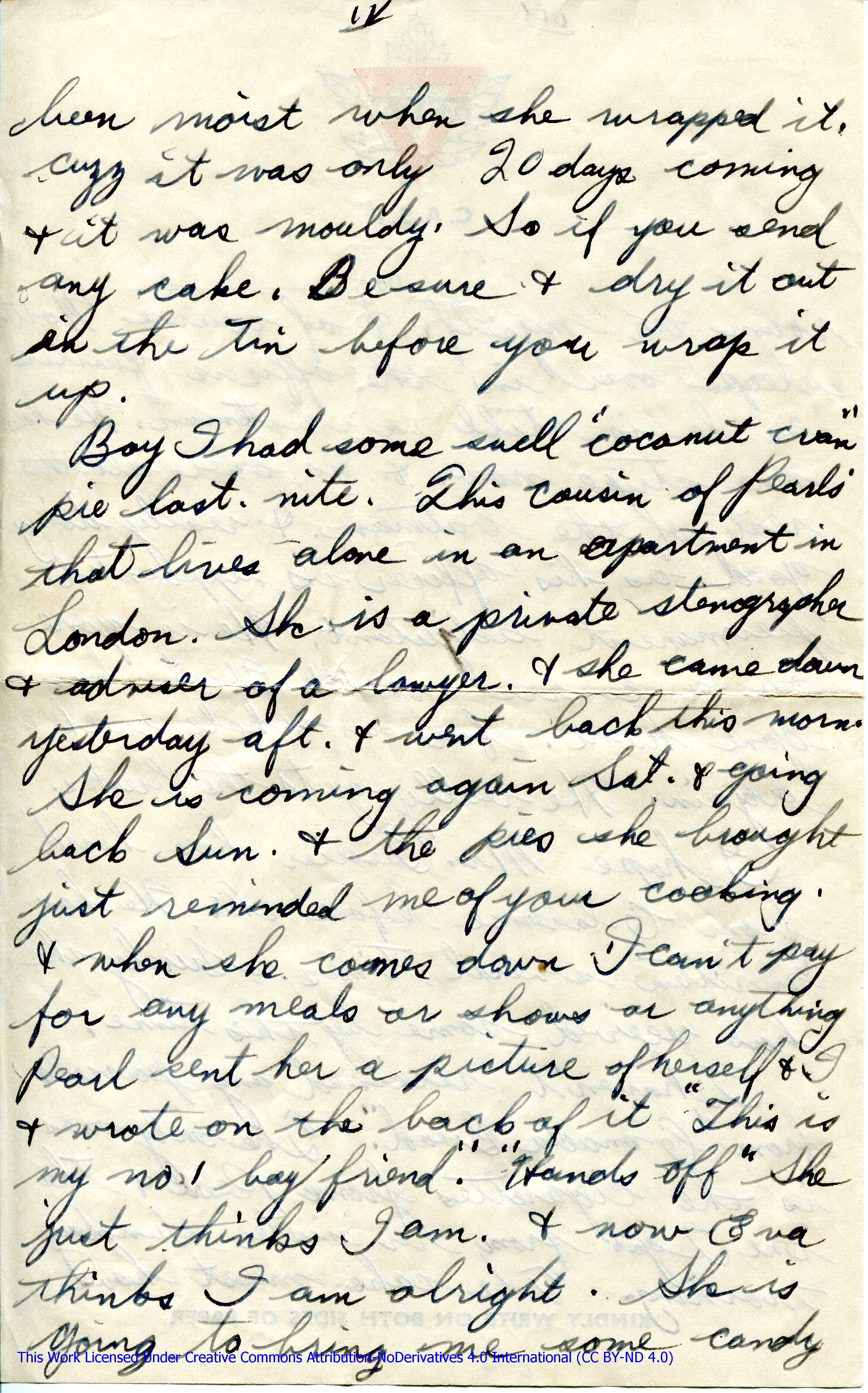 Personal Letter to Mrs. Elton Newman – September 26, 1940, sent from Aldershot, England, United Kingdom, Page 4.