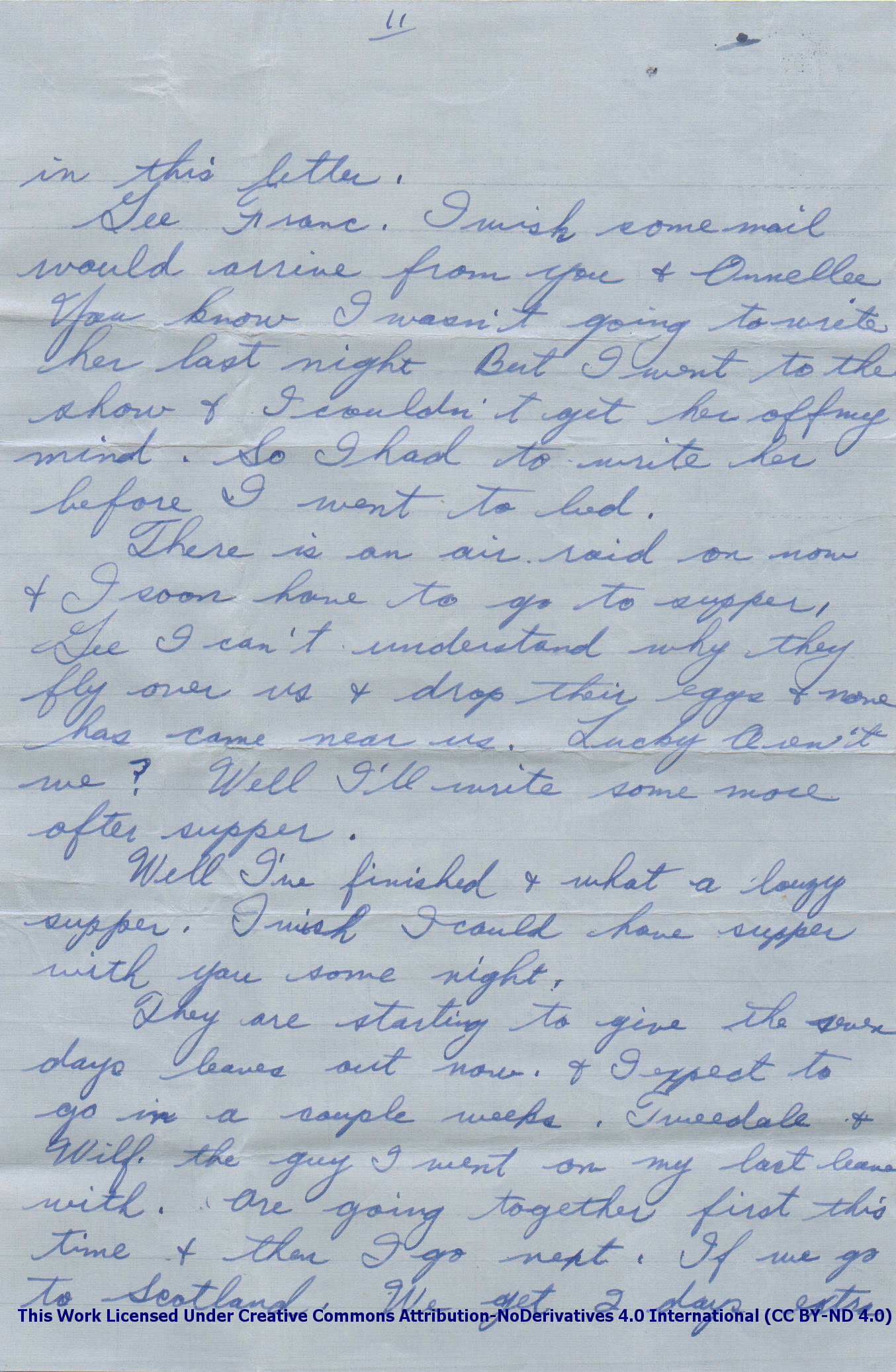 Well here it is 11.30 So I’d better get these lights out. If the orderly officer comes around here. He’d raise old hell. So I will close for now & go to bed. Good nite dear sister & all.