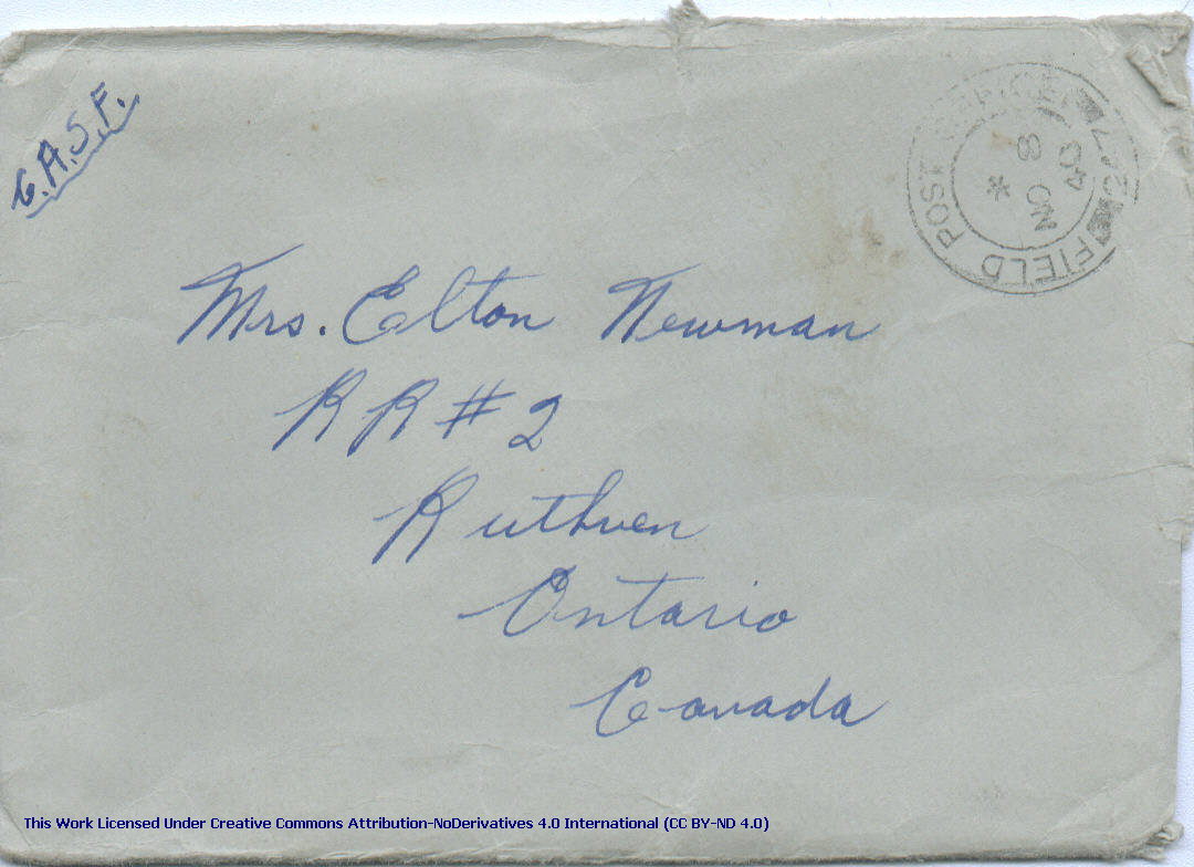 At last our mail came in & I got 14 letters How’s that for getting mail eh? I got your 4, 3 from Onn. 1 from Marg. and Charlie,1 from Wilbur and Gladys, 1 from Josephine Wride in Kingsville 1 from Dot Sweetman, 1 from Mildred Spence, 1 from Chip, & 1 from Pearl. & I was really tickled too. Just imagine going 2 weeks without any mail