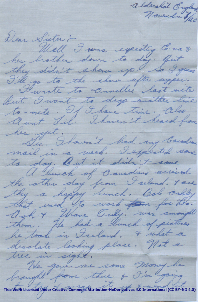I wrote to Onnellee last nite But I want to drop another line to-nite. If I have time. Also Aunt Lil. I haven’t heard from her yet.