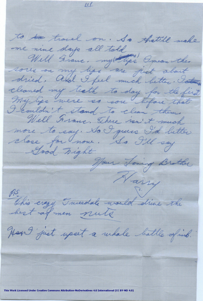 Well I’ve finished & what a louzy supper. I wish I could have supper with you some nighe.