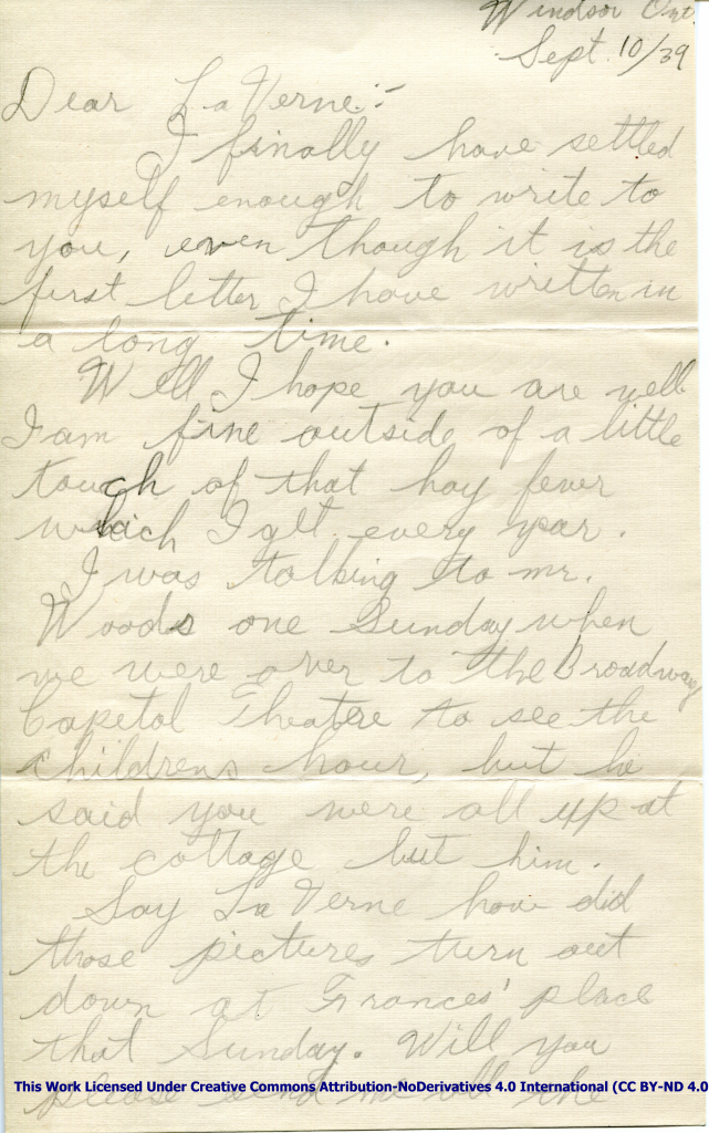 Letter to La Verne Woods – September 10, 1939