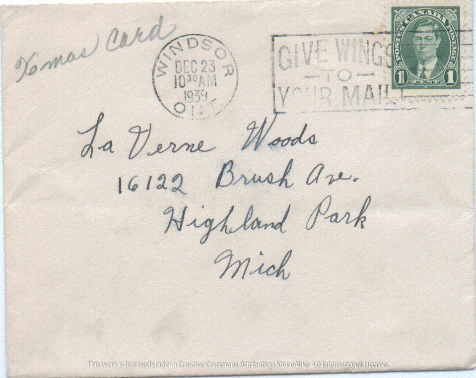 Christmas Card to La Verne Woods – December 22, 1939