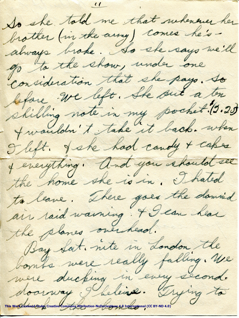 Artifact 1940-10-11-a – Letter to Miss La Verne Woods, sent from Aldershot, England, United Kingdom – Page 6.