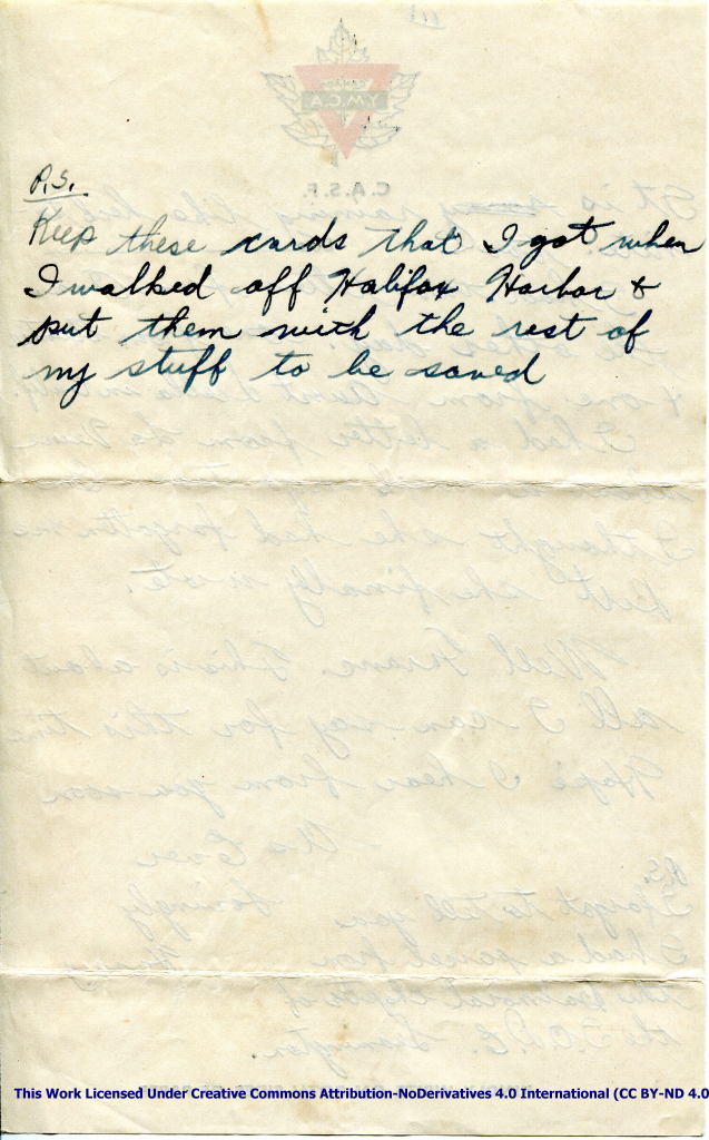 Artifact 1940-10-27-b – Postcard to Mrs. Elton Newman, sent from Aldershot, England, United Kingdom – Page 6.