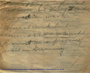 Official work has been Received L.C H W M Canadian Provost as a prisoner of war in Germany”