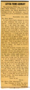 Source: Newspaper Clipping – Letter From Germany – September 14, 1942