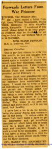 Mrs. Elton Newman Forwards a Letter From War Prisoner Harry William Manchester to The Windsor Daily Star.