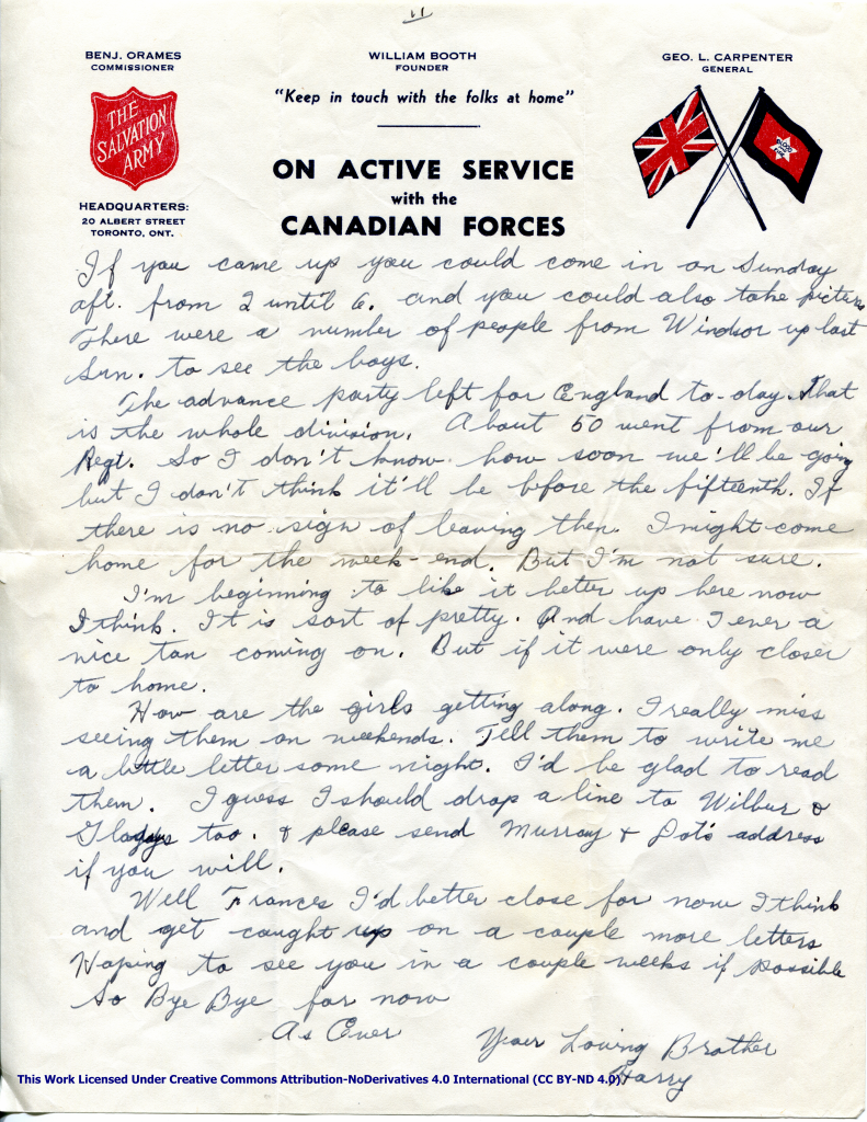 Artifact 1940-06-06-a – Letter to Mrs. Elton Newman sent from Aldershot, England, United Kingdom – Page 2.