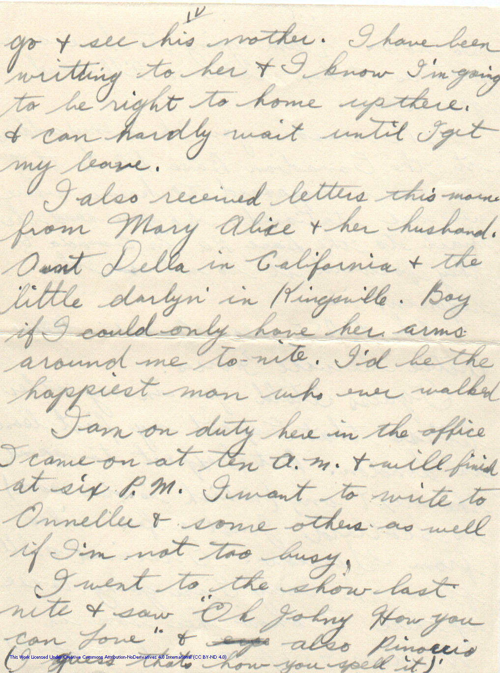 Personal Letter to Miss La Verne Woods – October 11, 1940, sent from Aldershot, England, United Kingdom, Page 4.