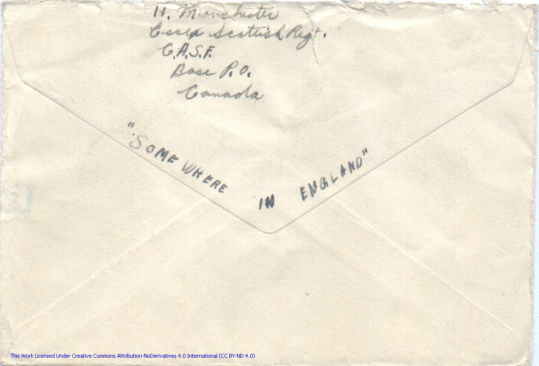 Personal Letter to Miss La Verne Woods – October 11, 1940, sent from Aldershot, England, United Kingdom, Envelope, Reverse.