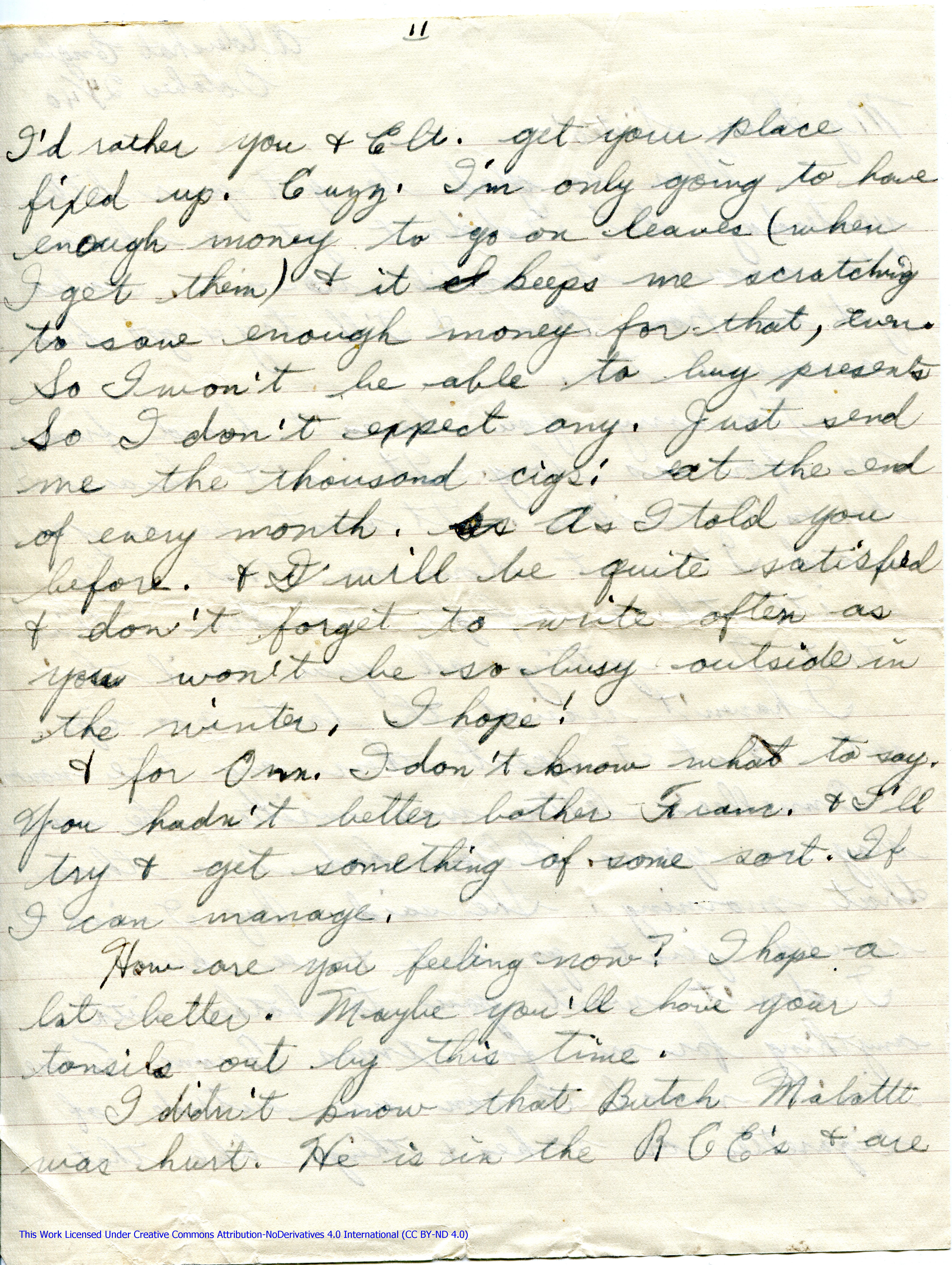 Was so glad to get your letter yesterday. But I didn’t get a chance to answer it until to-nite. I also got on from Onn. & I’ll try & get hers answered too.