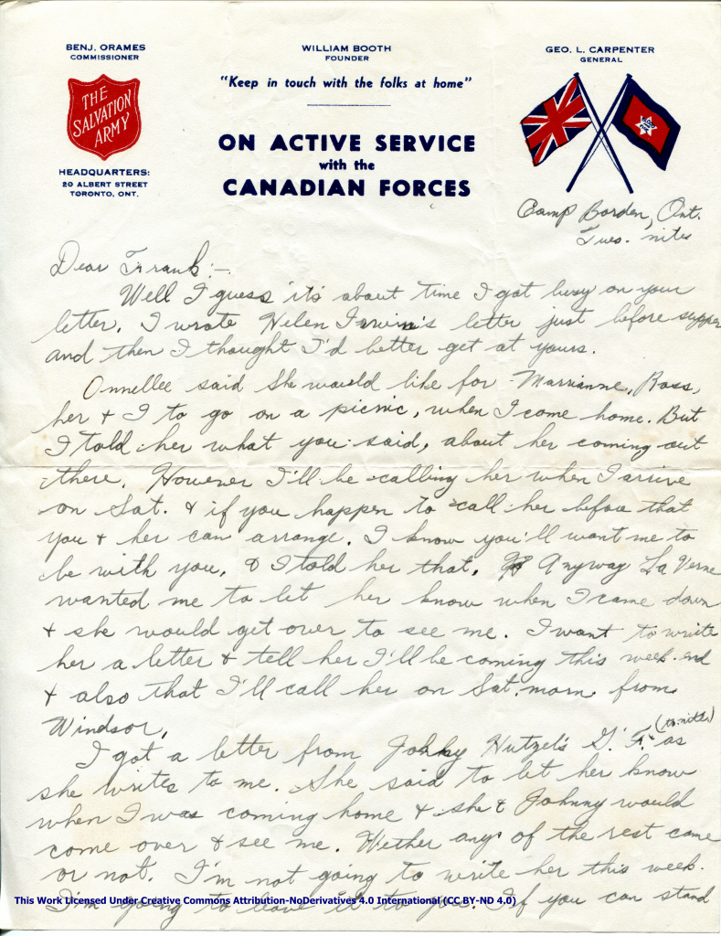 Onnellee said She would like for Marrianne, Ross, her & I to go on a picnic, when I come home. But I told her what your said, about her coming out there. However I’ll be calling her when I arrive on Sat. & if you happen to call her before that you & her can arrange. I know you’ll want me to be with you. & I told her that. Anyway La Verne wanted me to let her know when I came down & she would get over to see me. I want to write her a letter & tell her I’ll be coming this week. End & also that I’ll call her on Sat. morn. from Windsor.